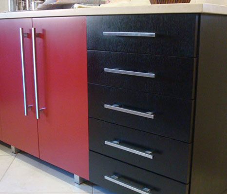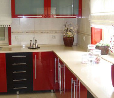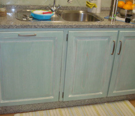 Móvel de cozinha com portas lacadas com esmalte poliuretano Mate.